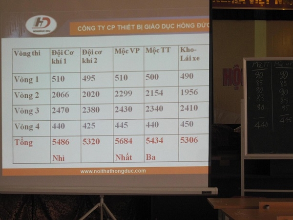 Chung cuộc, đội thi đến từ tổ Mộc văn phòng dành giải nhất, giải nhì thuộc về tổ Cơ khí I, giải 3 thuộc về tổ kho và Lãi xe