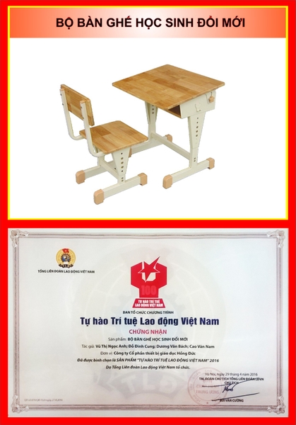 Bàn ghế học sinh đổi mới Hồng Đức đạt giải thưởng: top 100 sản phẩm “Tự hào trí tuệ Lao động Việt Nam năm 2016”