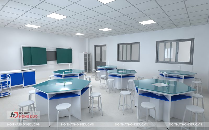 Bàn ghế thí nghiệm chuyên dụng đóng vai trò trung tâm của phòng học: