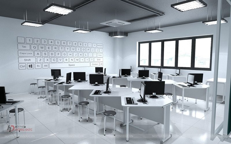 Một phòng STEAM hiệu quả không chỉ nằm ở thiết bị hiện đại, mà ở cách tổ chức không gian khoa học. Cách bố trí bàn máy tính cần đảm bảo vừa thuận tiện thao tác, vừa tối ưu diện tích sử dụng.