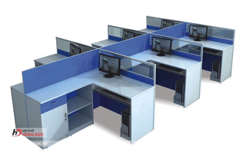Bàn văn phòng vách ngăn được chia thành các cụm bàn làm việc 2 người, 4 người, 6 người tùy từng không gian văn phòng cũng như nhu cầu. Điều này tạo sự chuyên nghiệp trong không gian văn phòng khi từ các module bàn làm việc việc trao đổi giữa các phòng ban nhanh gọn hơn.