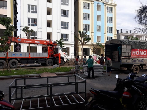 Hình ảnh Nội thất Hồng Đức dùng phương tiện để vận chuyển hàng đến lắp đặt tại công trình này