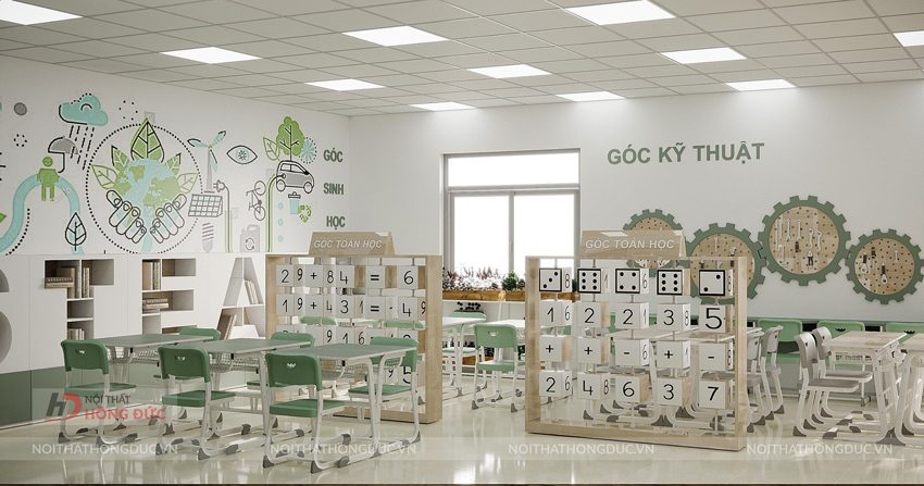Tính thẩm mỹ cao Màu sắc hiện đại, thiết kế theo xu hướng giáo dục quốc tế, tạo môi trường học tập truyền cảm hứng.
