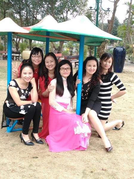 Chị em phụ nữ công ty CP TBGD Hồng Đức chụp hình lưu niệm tại diễn đàn
