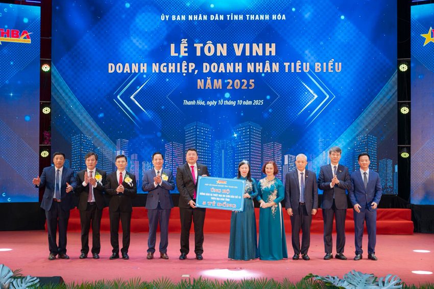 Trong khuôn khổ chương trình kỷ niệm Ngày Doanh nhân Việt Nam 13/10 do Ủy ban nhân dân tỉnh Thanh Hóa tổ chức, Công ty Cổ phần Thiết bị giáo dục Hồng Đức vinh dự được UBND tỉnh vinh danh và trao tặng Bằng khen “Doanh nghiệp tiêu biểu năm 2025”.