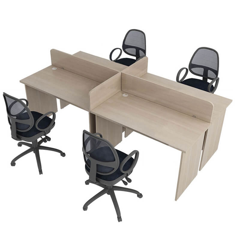 • Bàn làm việc đôi dạng thẳng: Kiểu bàn truyền thống với hai chỗ ngồi đối xứng, thích hợp cho các căn phòng hẹp và dài.