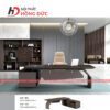 - Tông màu nâu trầm – đen phối hiện đại, sang trọng, tạo điểm nhấn cho không gian lãnh đạo.