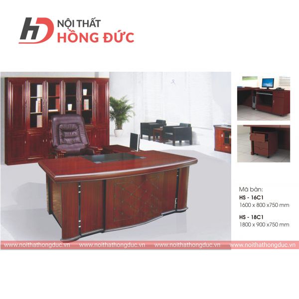 Bàn làm việc lãnh đạo Bao gồm 1 bàn, 1 hộc rời gỗ công nghiệp nhập khẩu sơn phủ công nghệ Đài Loan