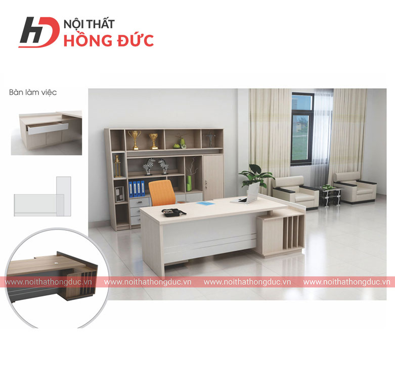 Bàn làm việc Hồng Đức là dòng sản phẩm được thiết kế theo tiêu chuẩn, kiểu dáng hiện đại, chất liệu cao cấp, độ bền cao, các dòng sản phẩm đa dạng phù hợp với mọi không gian làm việc tại văn phòng hay gia đình, công cộng.