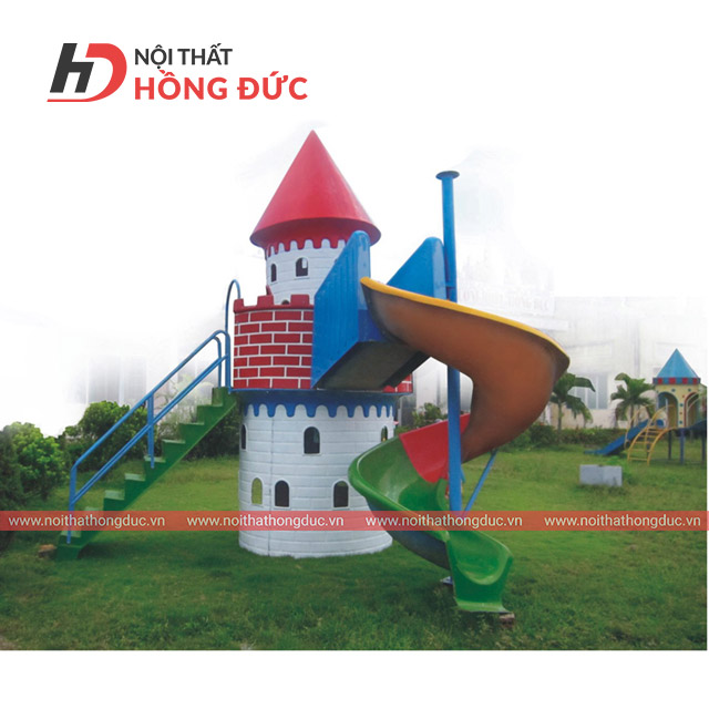 Bộ cầu trượt lâu đài Lan can bằng sắt mạ kẽm sơn tĩnh điện nhiều màu, Khung nhà, Cầu trượt và cầu thang bằng Composite