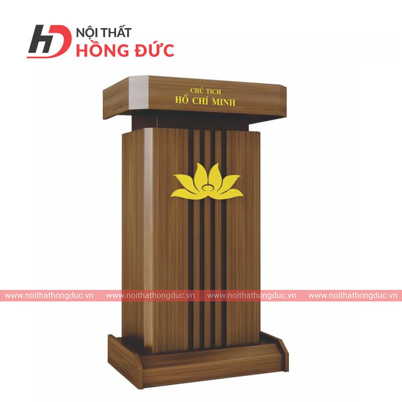 Bục tượng Bác MFN01 là một sản phẩm nội thất hội trường hiện đang được nhiều đơn vị sử dụng. Sản phẩm được sản xuất tại xưởng nội thất Hồng Đức, với kiểu dáng đơn giản, hiện đại và thể hiện được vẻ trang nghiêm. Rất thích hợp để đặt trong các vị trí quan trọng của phòng hội trường.