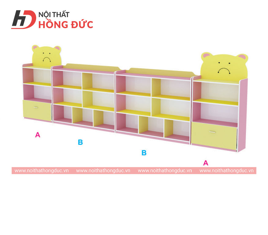 Đan xen giữa 2 màu sắc nhẹ nhàng hồng và vàng giúp dãy kệ hình đầu thú đa dạng và sinh động hơn. Chất liệu bằng gỗ công nghiệp nhập khẩu MFC chắc chắn, bền đẹp. Với chức năng là nơi để sắp xếp đồ chơi, đồ dùng cũng như sách truyện. Sản phẩm do nội thất Hồng Đức sản xuất và phân phối, giá cạnh tranh.