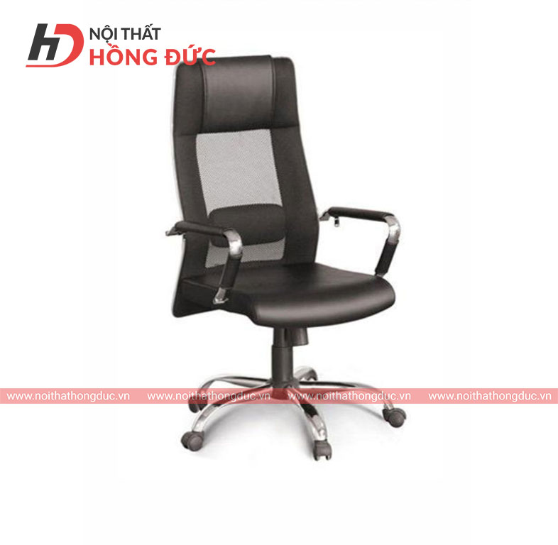 - Ghế xoay văn phòng lưng lưới. Mặt ngồi bọc da PU. Chân sao mạ