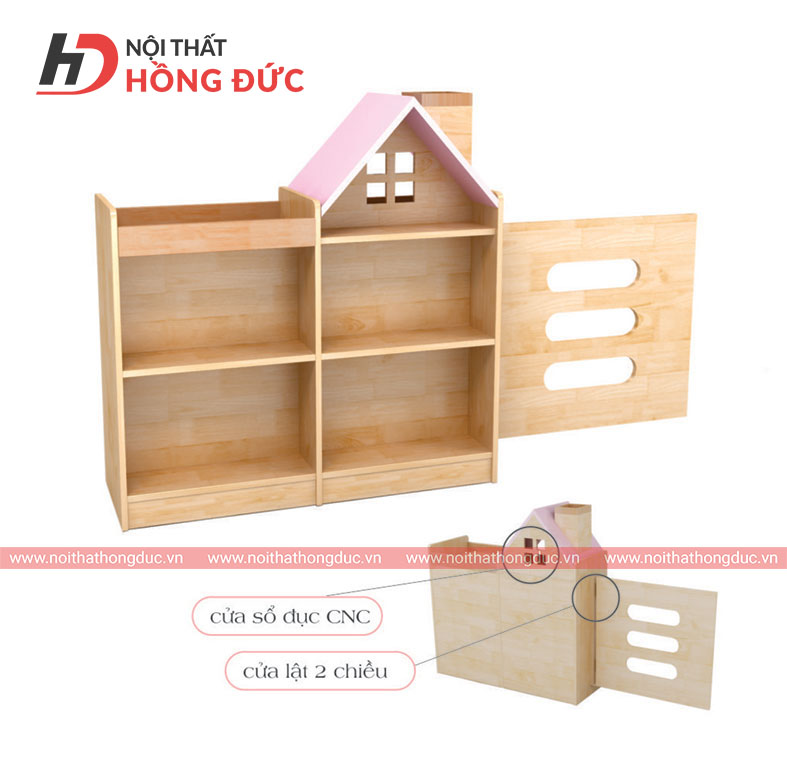 • Giá đồ chơi Chất liệu bằng gỗ tự nhiên ghép thanh, cửa lật 2 chiều