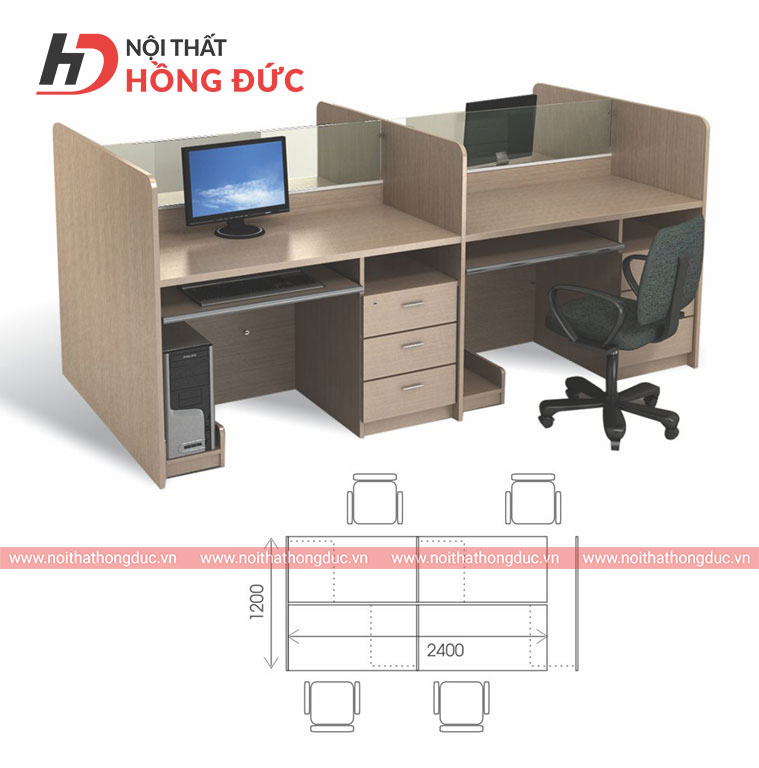 - Có kệ CPU và hộc tủ để tài liệu