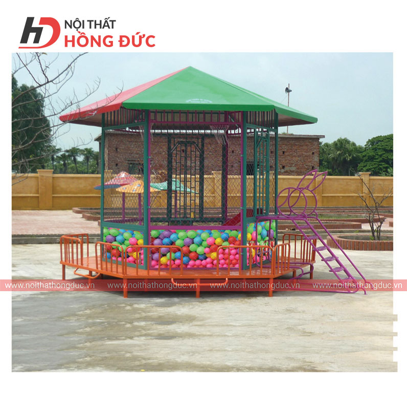 Nhà bóng lục giác có lan can Khung bằng sắt mạ kẽm sơn tĩnh điện nhiều màu, Máng trượt bằng nhựa composite