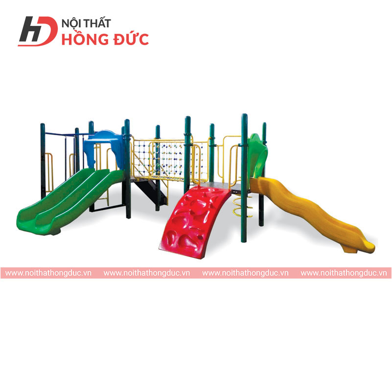 Tổ hợp cầu trượt Bằng khung sắt sơn dầu nhiều màu. Cầu trượt bằng composite