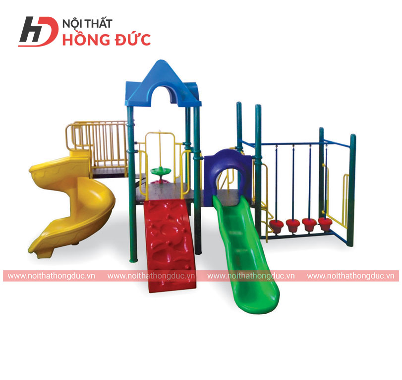 Tổ hợp cầu trượt Bằng khung sắt sơn dầu nhiều màu. Cầu trượt bằng composite