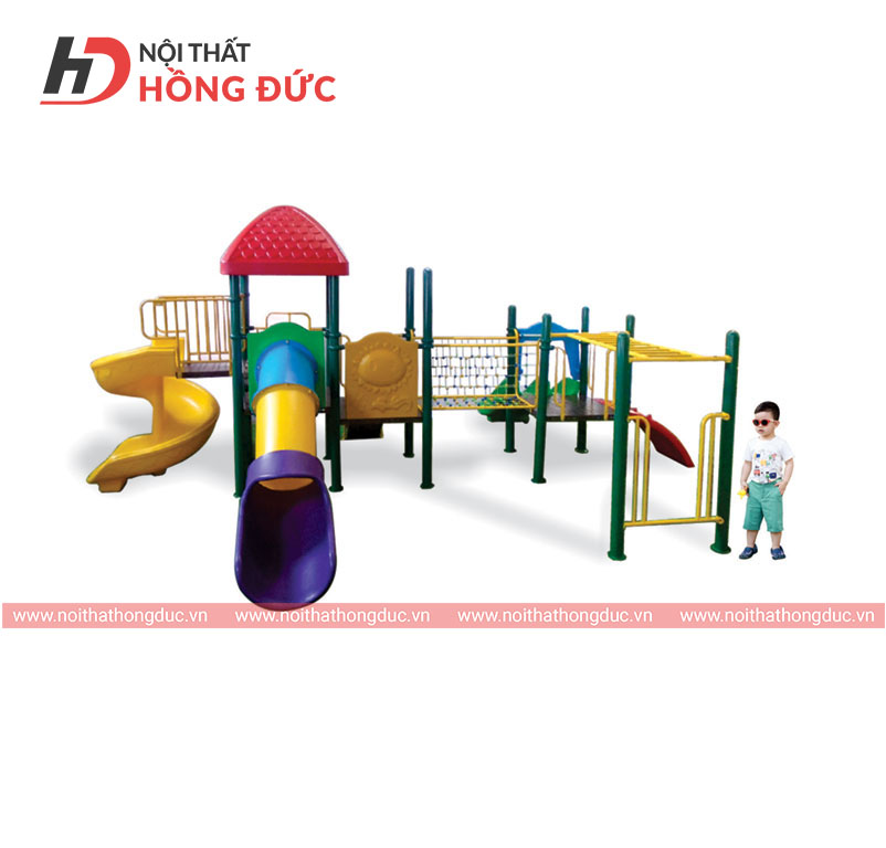 Tổ hợp cầu trượt Bằng khung sắt sơn dầu nhiều màu. Cầu trượt bằng composite