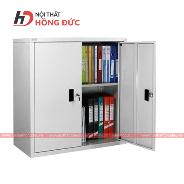 Tủ sắt 2 cánh mở, 2 khoang, 2 đợt. Chất liệu sắt sơn tĩnh điện.