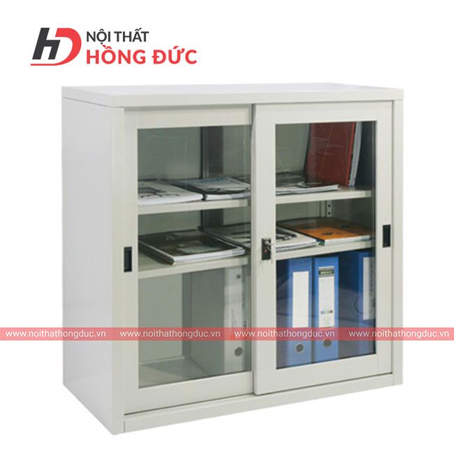 Tủ sắt cánh kính trượt, 2 đợt. Chất liệu sắt sơn tĩnh điện.