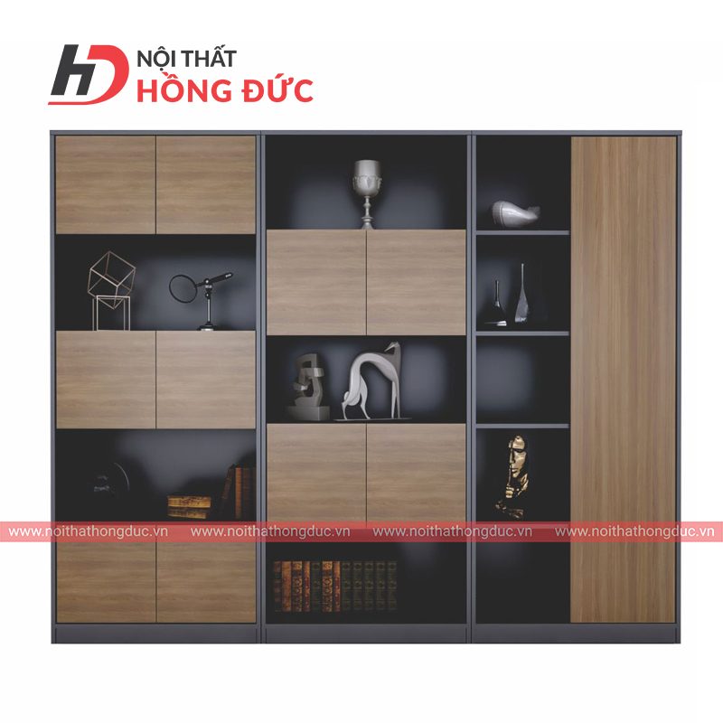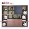 Khoang trái và giữa: Thiết kế theo dạng module với các ô vuông cân xứng. Xen kẽ giữa cánh kín và hộc mở giúp người dùng linh hoạt trong việc lưu trữ hoặc trưng bày sách, tượng decor, cúp hoặc hồ sơ.