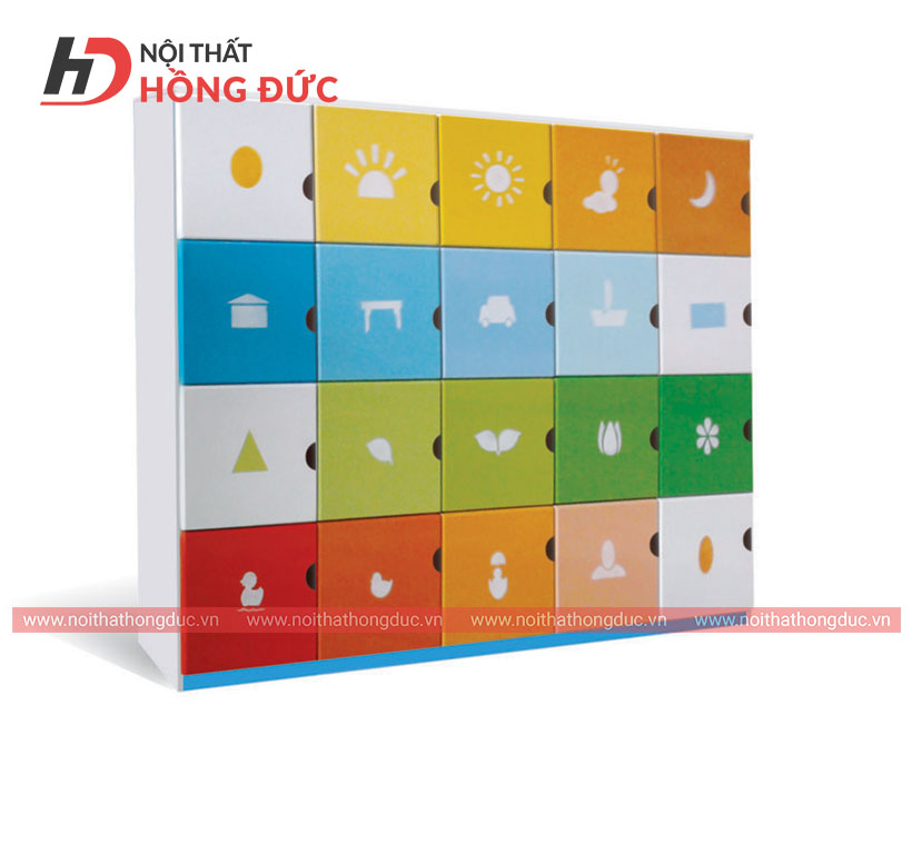 Tủ tư trang mầm non 20 ô bằng gỗ công nghiệp nhập khẩu MFC nhiều màu
