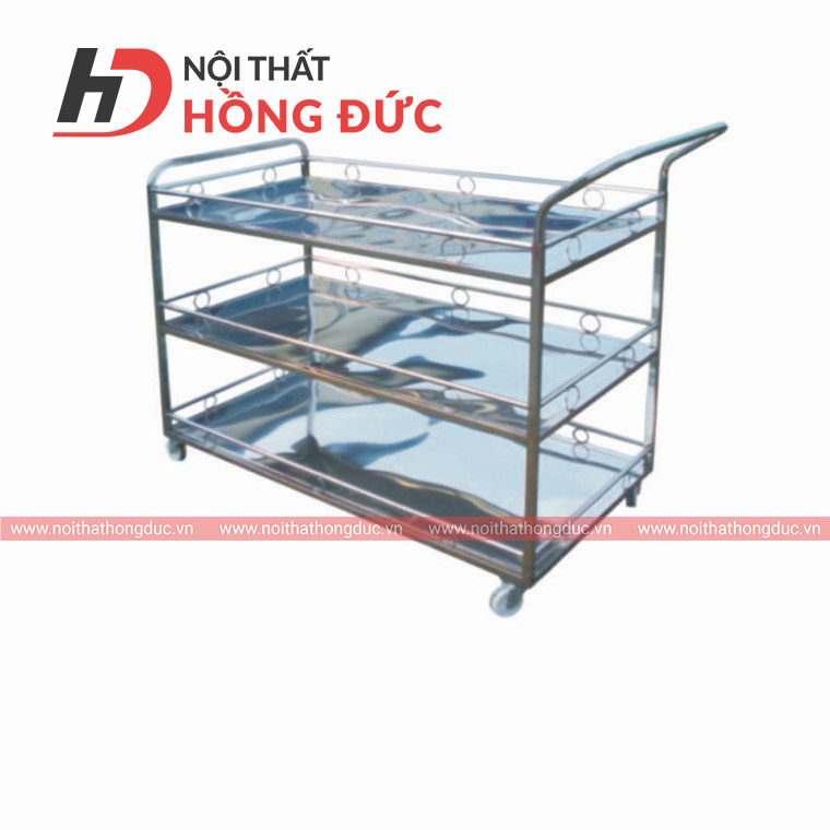 Xe đẩy thức ăn Khung bằng sắt sơn tĩnh điện, Mặt Inox