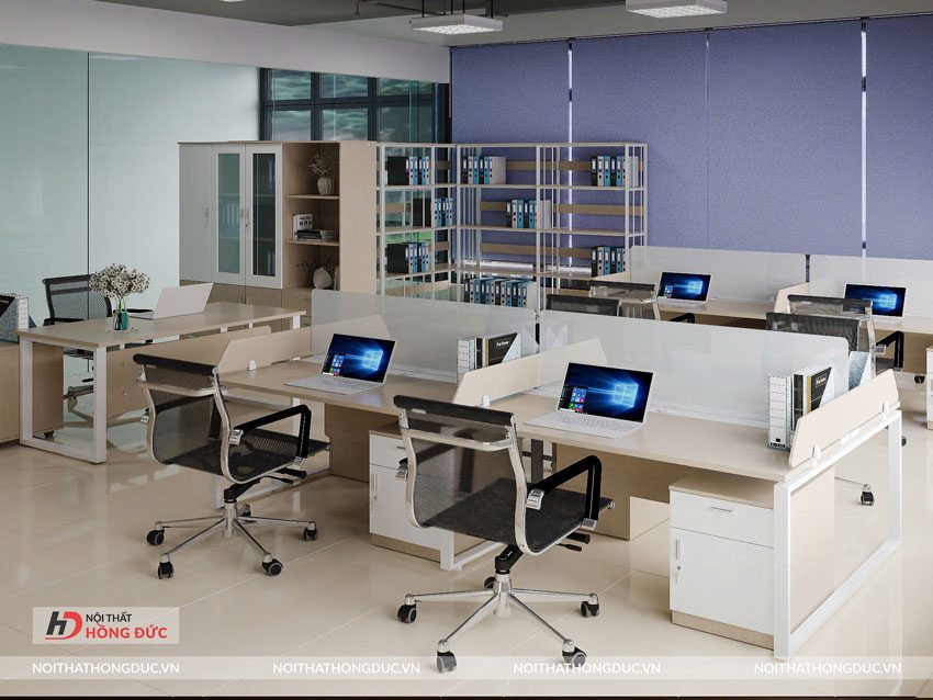 Một điểm dễ nhận thấy khi sử dụng module là tính đồng bộ. Khi toàn bộ khu vực làm việc dùng chung một hệ module, không gian tự nhiên có sự liên kết về màu sắc, kiểu dáng và bố cục. Văn phòng trông chuyên nghiệp hơn mà không cần phải trang trí quá nhiều. Chưa kể, nếu sau này công ty tuyển thêm người, bạn chỉ việc đặt thêm một cụm tương tự nối vào là xong. Không phải đau đầu đi tìm cái bàn lẻ sao cho giống cái cũ.