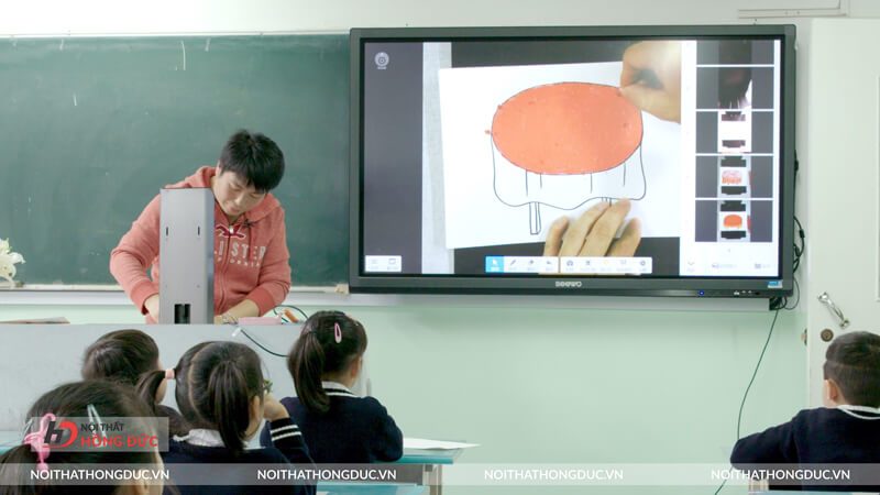 Thiết bị phòng học thông minh cung cấp cho giáo viên một công cụ giảng dạy hiện đại và hiệu quả, giúp giáo viên trình bày bài giảng một cách trực quan và hấp dẫn hơn. Giáo viên có thể sử dụng các tính năng trên màn hình tương tác để giảng dạy một cách tương tác và thú vị, giúp học sinh dễ dàng tiếp thu và hiểu bài học.