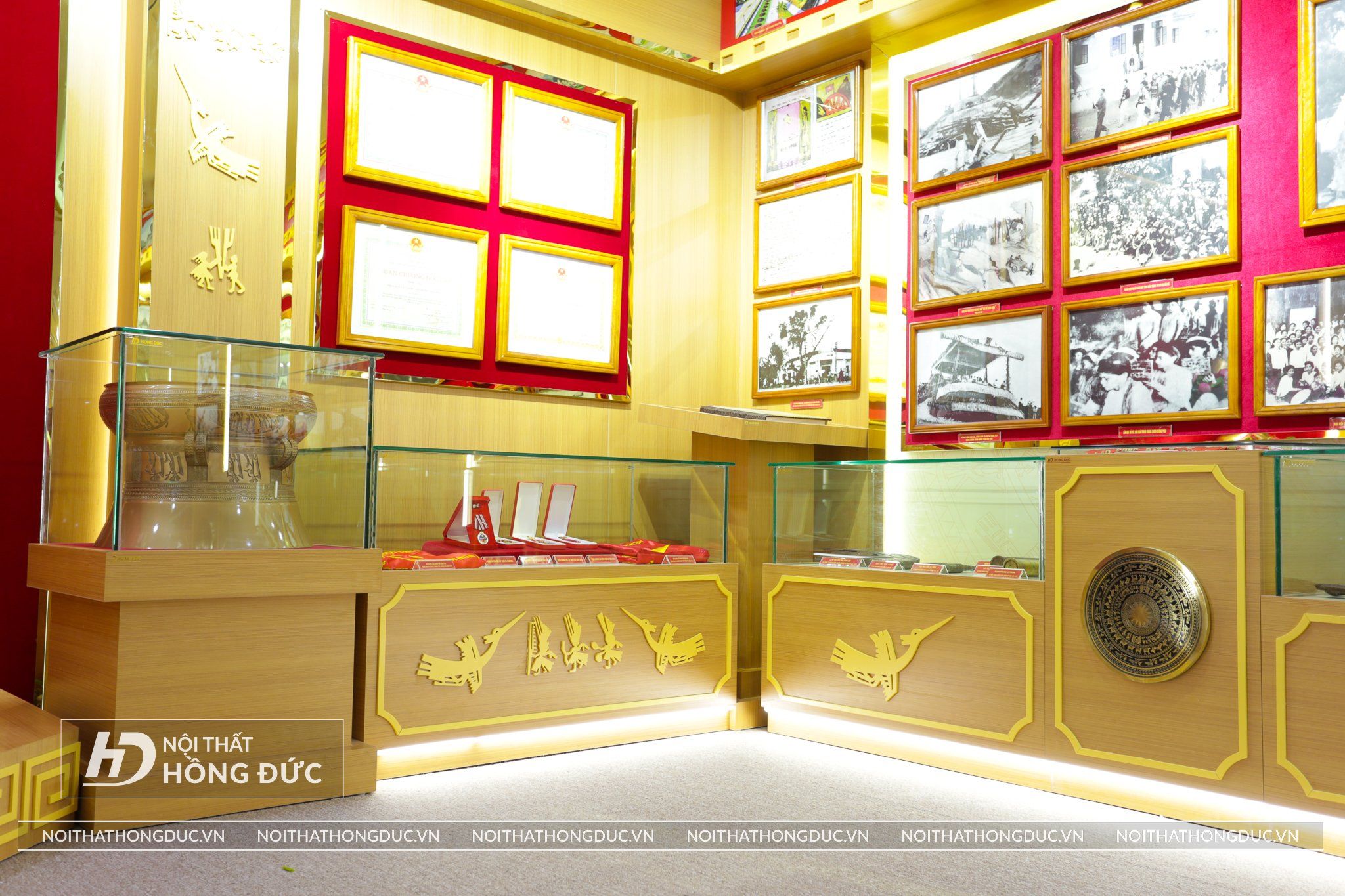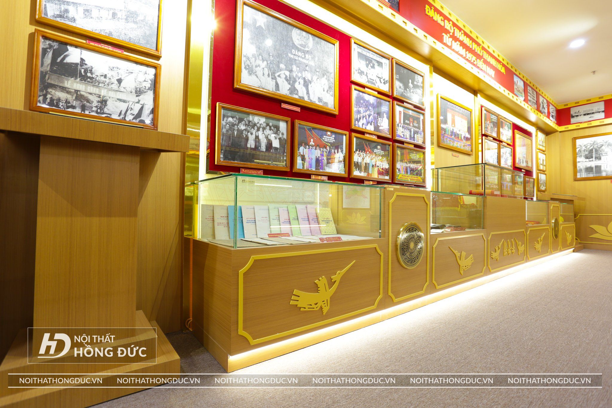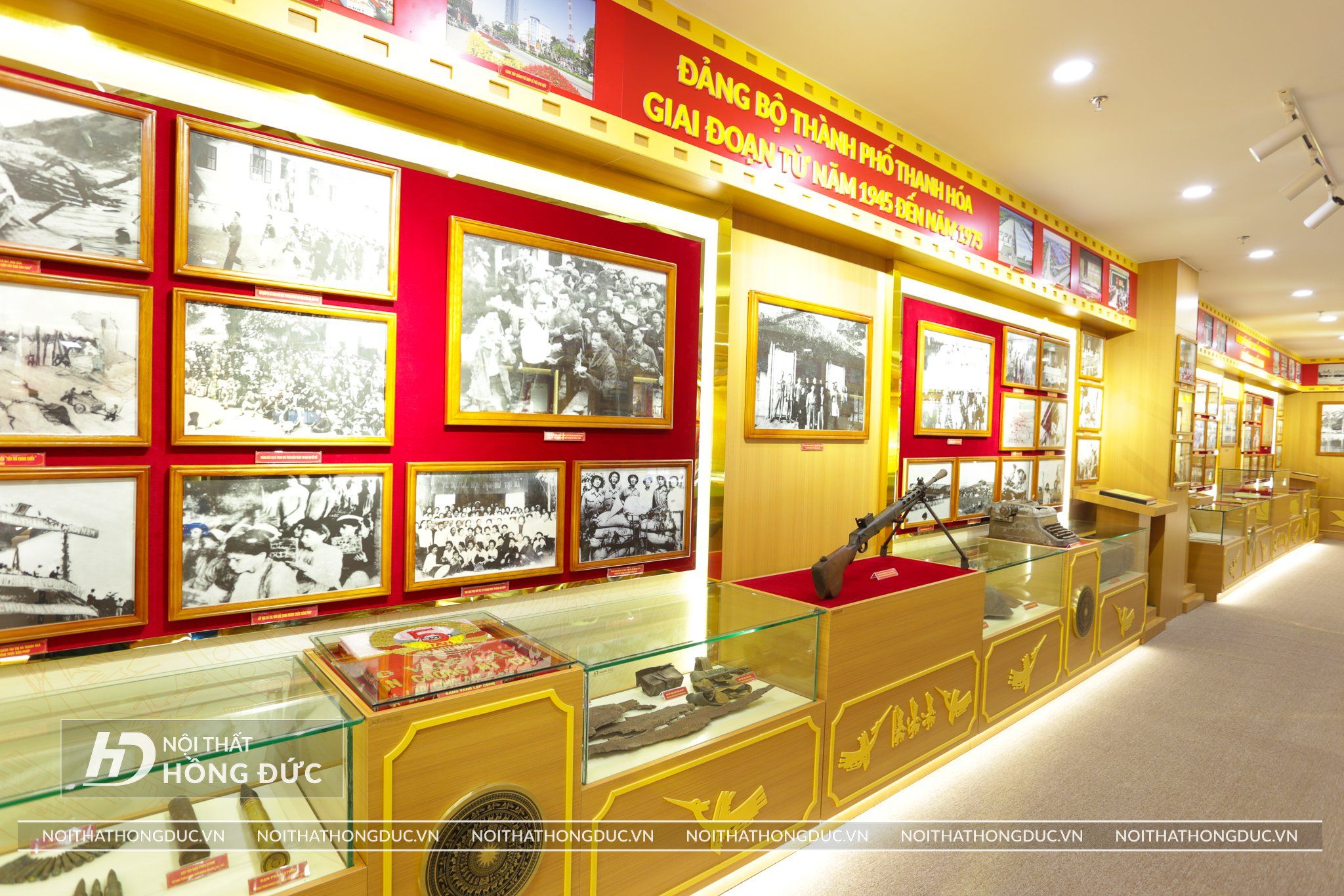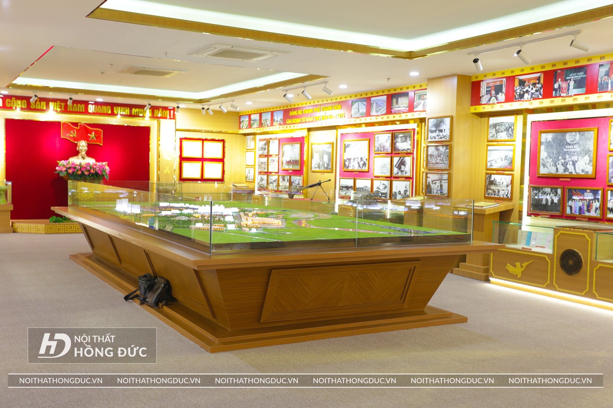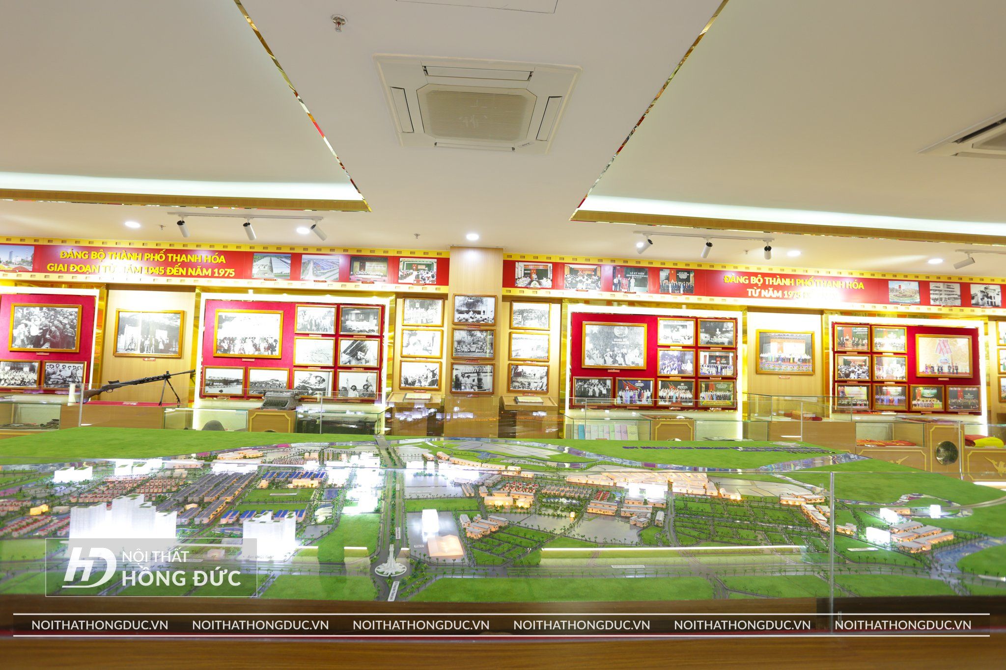 Nội thất Phòng Truyền thống UBND TP.Thanh Hóa được Nội Thất Hồng Đức thiết kế và thi công hoàn thiện trong vòng 20 ngày, Các tư liệu, hình ảnh, hiện vật về Thành ủy TP Thanh Hóa qua các thời kỳ được trưng bày trực quan trên các tủ kính ốp tường và đặt trên sàn; đồng thời, sử dụng album kỹ thuật số và các công nghệ, kỹ thuật mới về ánh sáng, âm thanh, hình ảnh,… tạo hiệu quả cao trong trưng bày.