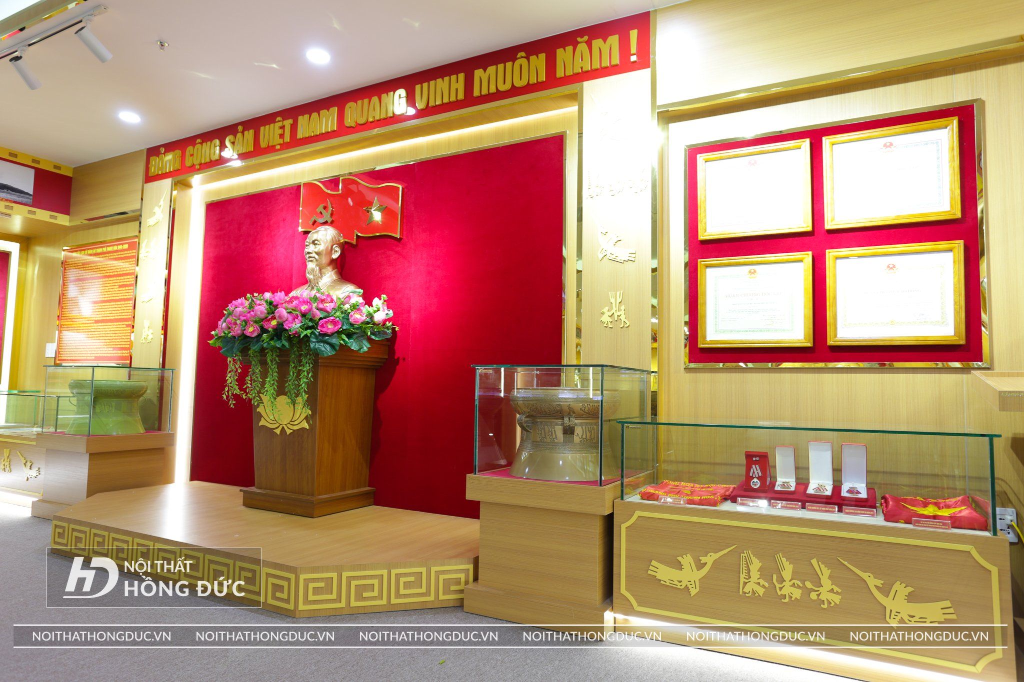 Nội Thất Hồng Đức rất vinh dự là đơn vị thiết kế và thi công nội thất phòng Truyền thống của Tỉnh Ủy TP Thanh Hóa.