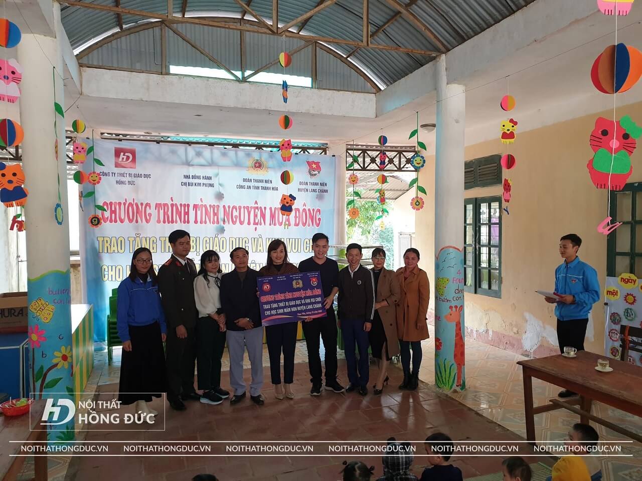 Nội thất Hồng Đức rất hân hạnh được đồng hành cùng Chương trình Tình nguyện mùa đông – “Trao tặng Thiết bị Giáo dục và khu vui chơi cho học sinh Mầm non huyện Lang Chánh”. Bên cạnh đó, đồng hành với chương trình có: Đoàn thanh niên Công an tỉnh Thanh Hóa; Đoàn thanh niên huyện Lang Chánh; Nhà đồng hành chị Bùi Kim Phụng. Chương trình diễn ra vào ngày 16/12/2022.